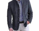 Blazer uomo formale scamosciato blu fatto a mano vera pelle di agnello elegan...