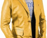 Blazer uomo giallo due bottoni fatto a mano in vera pelle di agnello festa fo...