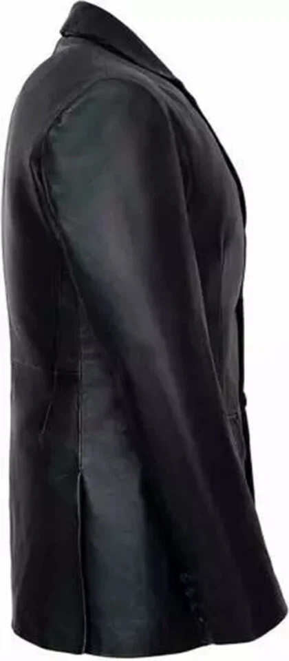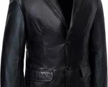 Blazer uomo morbido formale in vera pelle di agnello nero due bottoni fatto a...