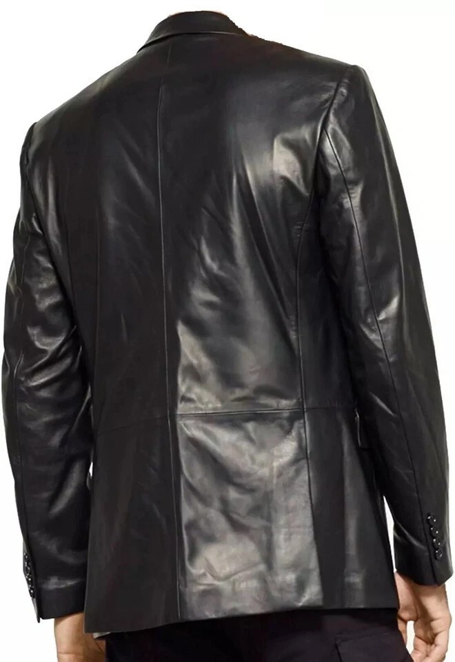 Blazer uomo nuovo fatto a mano con due bottoni in vera pelle di agnello nera ...