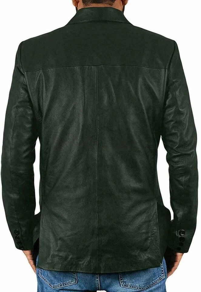 Blazer uomo pelle di agnello festa formale nuovo verde due bottoni fatto a mano originale\MN