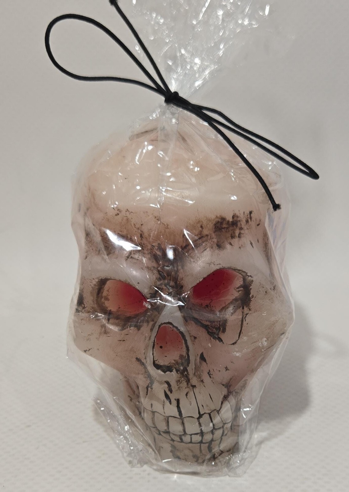 Bleeding Skull Candle 4.4 inches tall -Halloween Light up your night with this unique single wick, unscented, 'Bleeding Skull Candle'. Features intricate carvings and red wax on the inside that eventually 'bleeds out'. Perfect decorative piece for your indoor or outdoor Halloween/Goth setting. Made of wax, this specialized candle is unscented and has a vintage textured finish. Brand new. Never used or displayed. Original packaging. Would make an excellent gift.