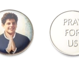 Approximate measurements: 1.25"in diam. made of medal. It's a 2 sided medal, has an image of him on one side and "Pray for Us" on the other.