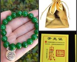 - Blessed! Tibetan 18 10mm Green Jade Beaded Lotus Amulet Mala Bracelet -6"