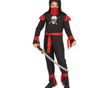 A truly classic Halloween costume for boys! He'll bound through the neighborhood in this ninja costume, showing off his best moves and collecting trick-or-treat candy on his way. Comfortable and easy to wear, it's a rocking red-and-black ensemble he'll love to use during playtime. Shoes and sword not included. Polyester. Fits sizes 6-8.Includes:? Black hooded jumpsuit with attached red arm and leg ties? Red waist sash? Red face mask