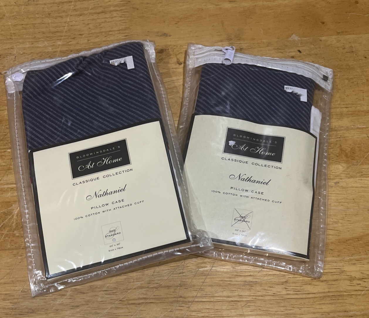 - Bloomingdales at Home Navy Nathaniel Pillowcases 100% Cotton With Attached Cuff