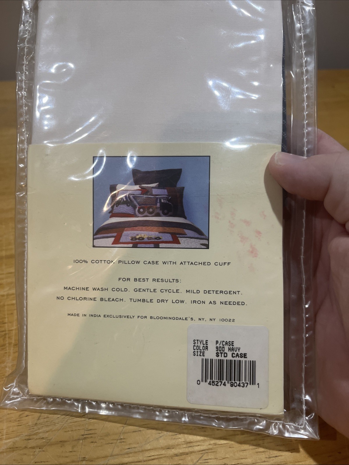 Bloomingdales at Home Navy Nathaniel Pillowcases 100% Cotton With Attached Cuff