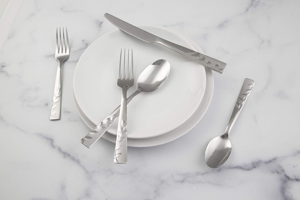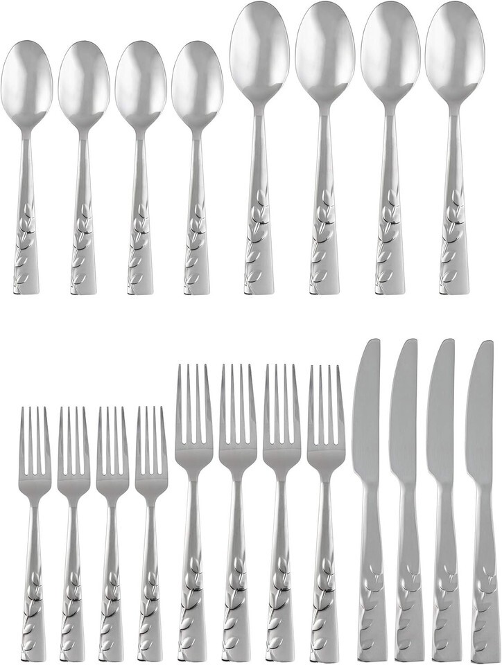 Includes: 4 salad forks, 4 dinner forks, 4 teaspoons, 4 tablespoons, and 4 butter knives