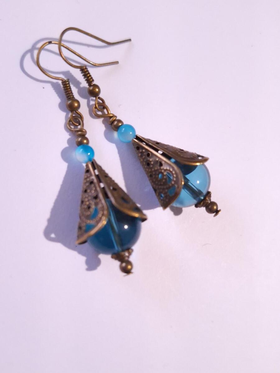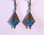 - Blue Agate bronze earrings Victorian earrings blue glass blue Agate earrings boh