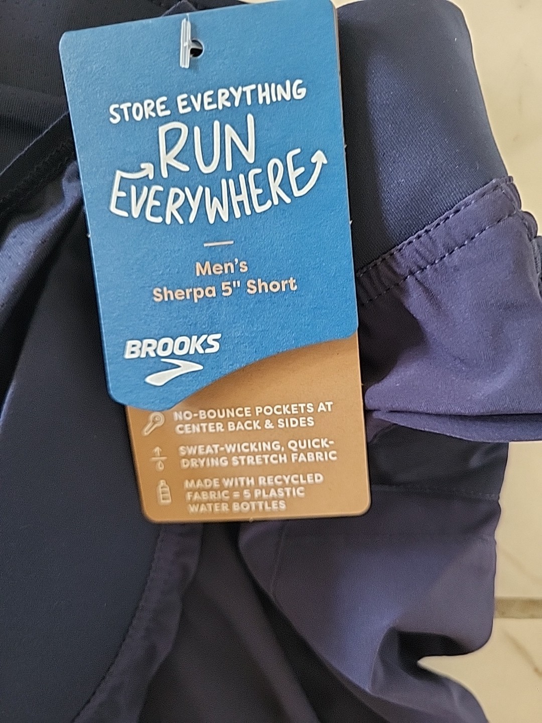 Brand New with Tags! Blue Brooks Running Run Happy Lined Athletic Shorts Sherpa 5" Men's Size: XXL FEATURES: Lightweight, stretch-woven fabric is comfortable next to your skin Sweat-resistant mesh brief liners with security pocket Elastic waistband with stretch drawcord Angled side envelope pockets hold energy gels or cash and card Semifitted You just might feel faster before you even head out the door in the 5 in. Brooks Sherpa shorts for men. They offer a sweat-resistant construction and 3 small pockets for stashing your stuff. GREAT ITEM AT A GREAT PRICE!!