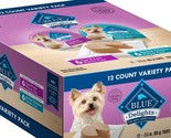 REAL BEEF OR CHICKEN FIRST: This grain-free wet dog food features high-quality protein from real beef or chicken to promote healthy muscle maintenance while supporting the higher energy needs of small-breed dogs SINGLE SERVING MEALS: BLUE Delights small breed adult dog foods are perfectly portioned for smaller dogs making them easy and convenient to serve NATURAL DOG FOOD: All BLUE dog foods are made with the finest natural ingredients and enhanced with vitamins and minerals WHOLESOME INGREDIENTS: BLUE wet dog food contains NO chicken (or poultry) by-product meals, NO corn, wheat (a common thickening agent used by other brands), or soy, and NO artificial flavors or preservatives Contains one (1) variety pack of BLUE Delights Natural Adult Small Breed Wet Dog Food Cups, Top Sirloin Flavor in Savory Juice, and Grilled Chicken Flavor in Savory Juice 3.5 oz. (12pack- 6 of each flavor)