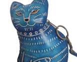 Primary image for Blue Cat Leather Wristlet Wallet Change Coin Purse Zip Closure Charm Keychain