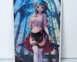 - Blue Hair Pink Rose Church Premium Waifu Card Anime Girl Art Oversized Board A6