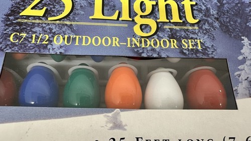 Lot of 2 New old stock Add a touch of festive cheer to your home with these Blue Ridge 25 Light C7 Christmas Lights. Perfect for the holiday season, these multicolor string lights are designed to create a warm and cozy ambiance in any room. The green cord color adds a touch of elegance to the overall design, while the incandescent lighting technology ensures bright and vibrant colors. Whether you're looking to decorate your home or add to your holiday gift collection, these Blue Ridge Christmas lights are sure to impress.