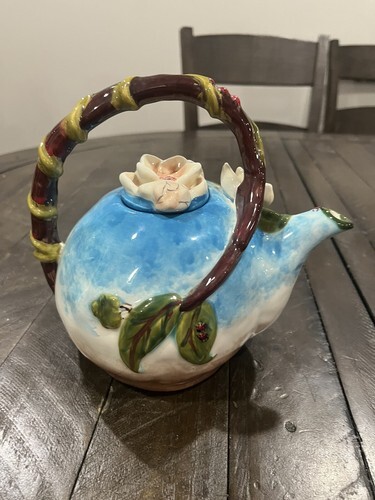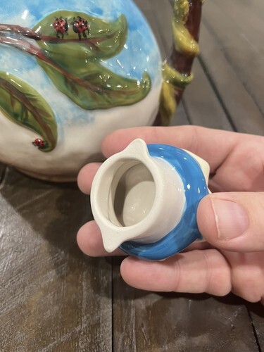 Blue Sky Ceramics Teapot Heather Goldmine Bella Flora Summer Dogwood Ladybugs