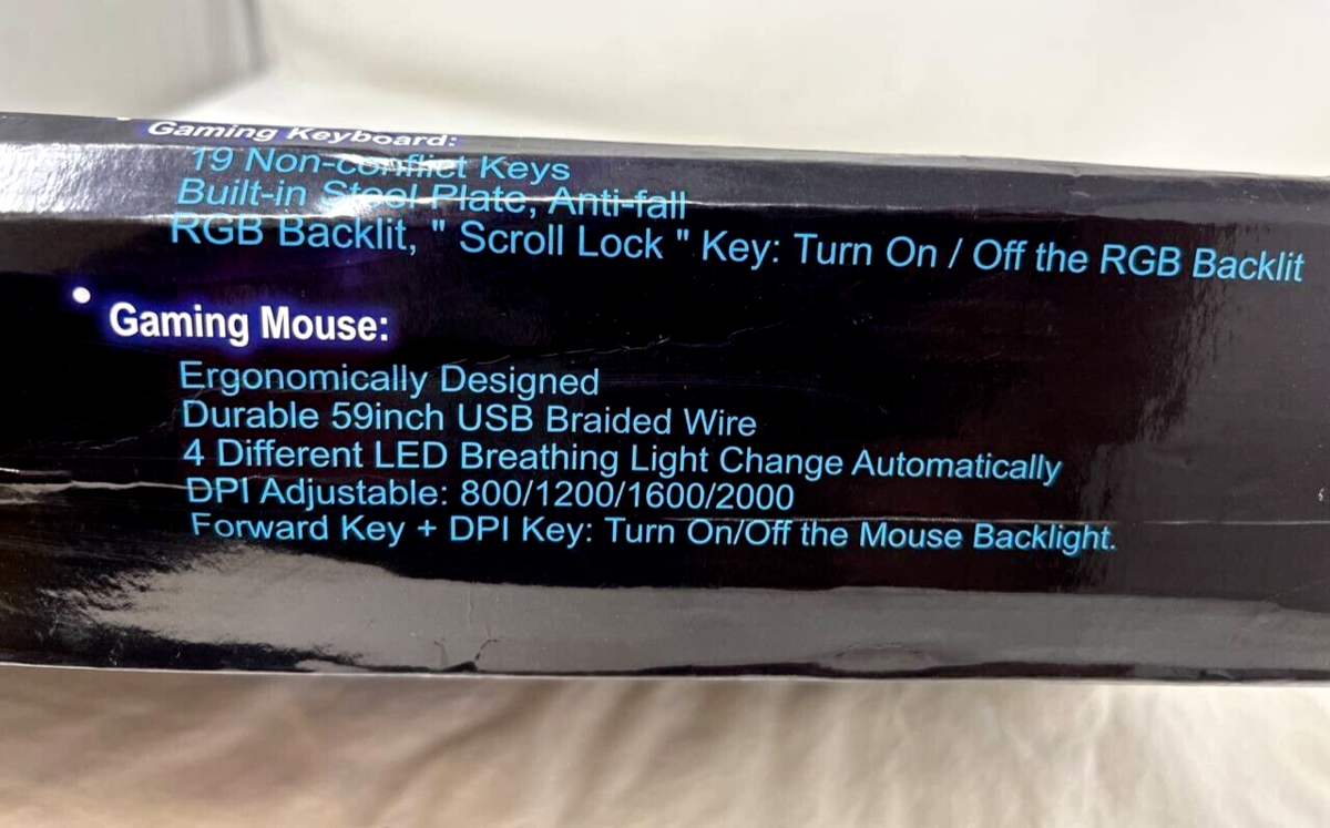 Item includes: Please note: This item includes 1x BlueFinger RGB Wired Keyboard and 1x RGB Mouse ? As Pictured. No other accessories are included.