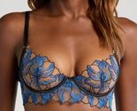 Bluebella Lyandra Underwire Embroidered Lace Mesh Bra, Blue/Black, 32DD, NWT