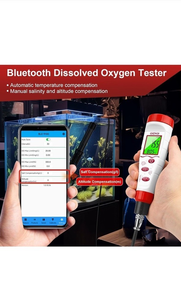 - Bluetooth Dissolved Oxygen Meter with ATC 9.84 Feet Probe Cable 0.0-40.0mg/L