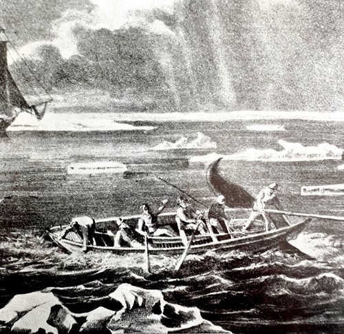 Primary image for Boat Ocer Whales Tail Whaling 1926 Nautical Antique Print Whale Hunting DWW4B