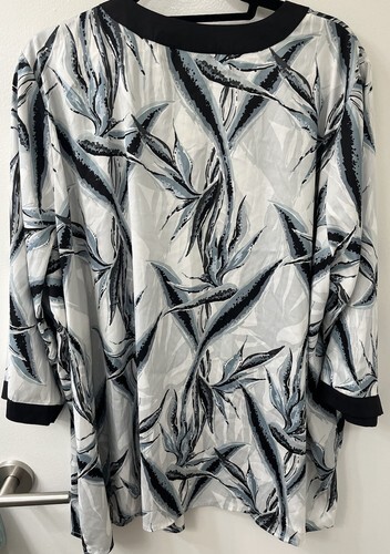 Elevate your wardrobe with this stunning Bob Mackie Shrug! This versatile piece features 3/4 sleeves and an open cardigan style, perfect for layering over your favorite outfit. The white and blue floral print is accented with touches of grey, making it a great option for any occasion. The brand name is a must-have for anyone looking to add a touch of glam to their wardrobe. Don't miss out on this stylish and unique piece! Very good condition and comes from a smoke free home! Please let me know if you have any questions! Approx Measurements: Chest (pit to pit): 27" Length:30.5"