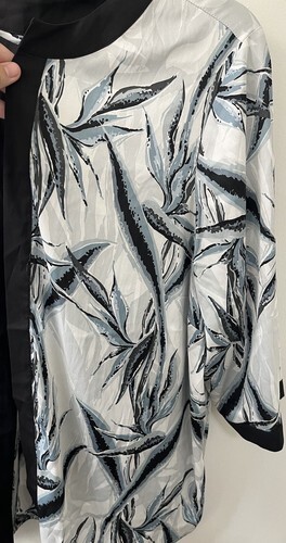 Bob Mackie Shrug 3/4 Sleeve Open Cardigan white blue floral plants leaves grey