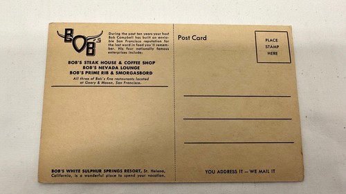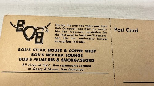 - Bob’s Steak House Postcard San Francisco 50s 60s Comic Pigs Advertisement