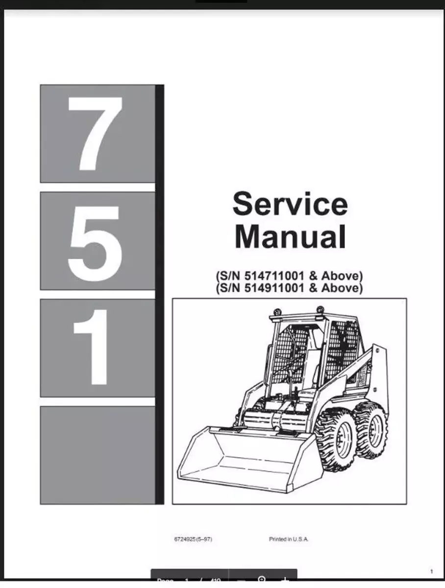 Bobcat - 751 Service Repair Manual, Skid Steer, Skid loader Manual