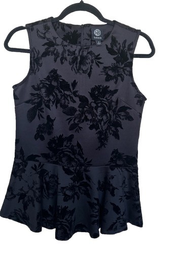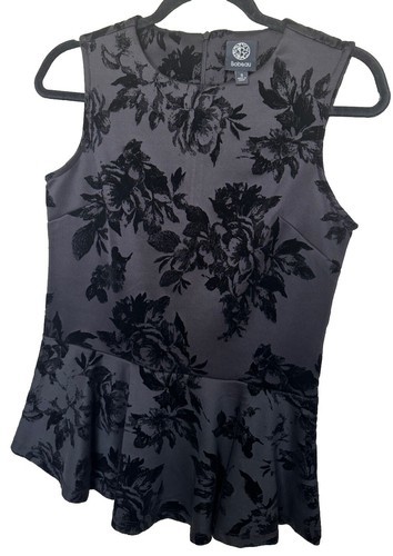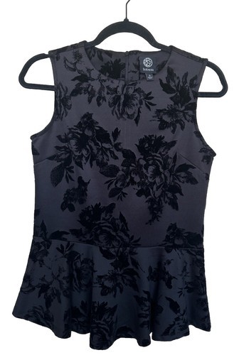 Bobeau Black & Velvet Floral Cold Shoulder Tunic Top Women's Small S