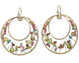 Hammered circles with peridot, ruby, and mandarin garnet wrapped around inside, about 2-1/4" long.