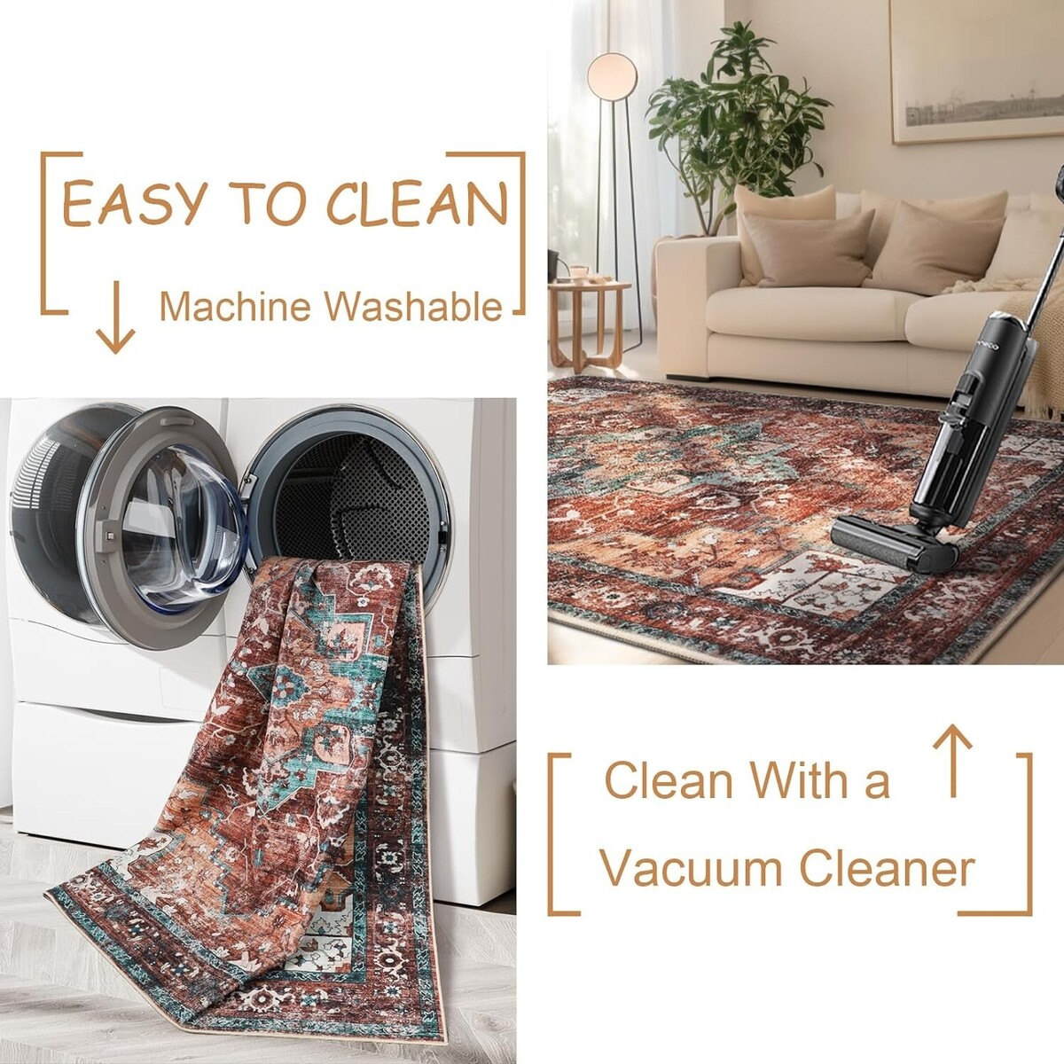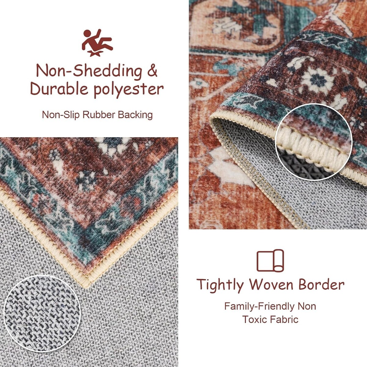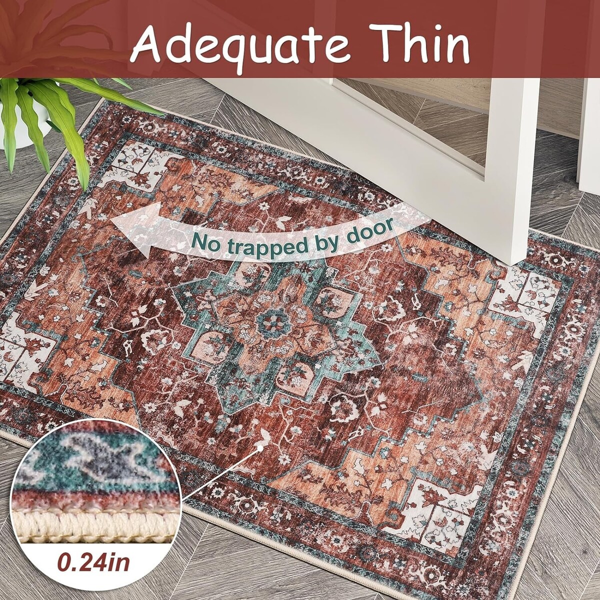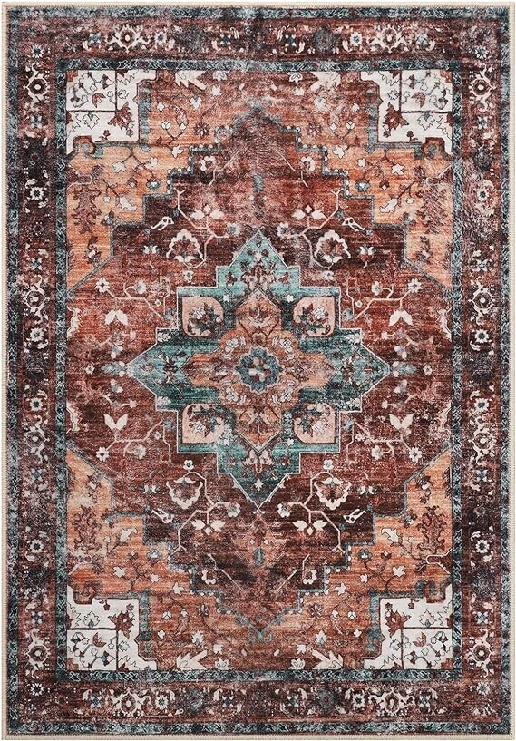 ? Soft Design?Mecko area rugs have been deliberately antiqued and exude a timeless vintage charm that adds character to any space. This rug is made of high-quality faux wool fibers; Soft to the touch, and lint-free. ?Ultra-thin Safe?This ultra-thin rug can be easily placed in entryways and under furniture without getting stuck in doors and becoming a tripping hazard. The rug features a 0.24-inch ultra-soft velvet surface that is incredibly soft. Sweeping robots can all move freely and cleanly without obstacles. ?Child Pet Friendly?Soft carpet provides safety for your children and reduces the likelihood of injuries caused by falls. Pets' paws won't get hooked or caught on the edges, causing them to scratch the floor. ?Non-Slip Stable ?Our washable rugs are made with high-quality Non-Slip TPR latex backing, clear upthe need to purchase an additional carpet Non-Slip pad, which effectively keeps the rug in a stable position, preventing dangerous movement and slips, and keeps your family's activities safe. This indoor rug can be used in frequent walking situations such as home entrances, living rooms, bedrooms, dining rooms, etc. ?Machine Washable?Use a broom or rag for daily cleaning to prevent dirt and debris from seeping into the fibers. A washer and dryer can also be used for deeper cleaning. Easy to maintain a new look. Rugs may wrinkle temporarily when folded and packaged, it is recommended to roll the rug in the opposite direction to give the creases time to flatten and set.