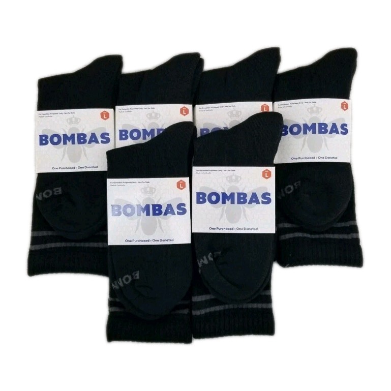 - Bombas Solid Crew Mid-Calf Sock 6-Pack Black Men's L (Shoe Size 9.5-13) NWT