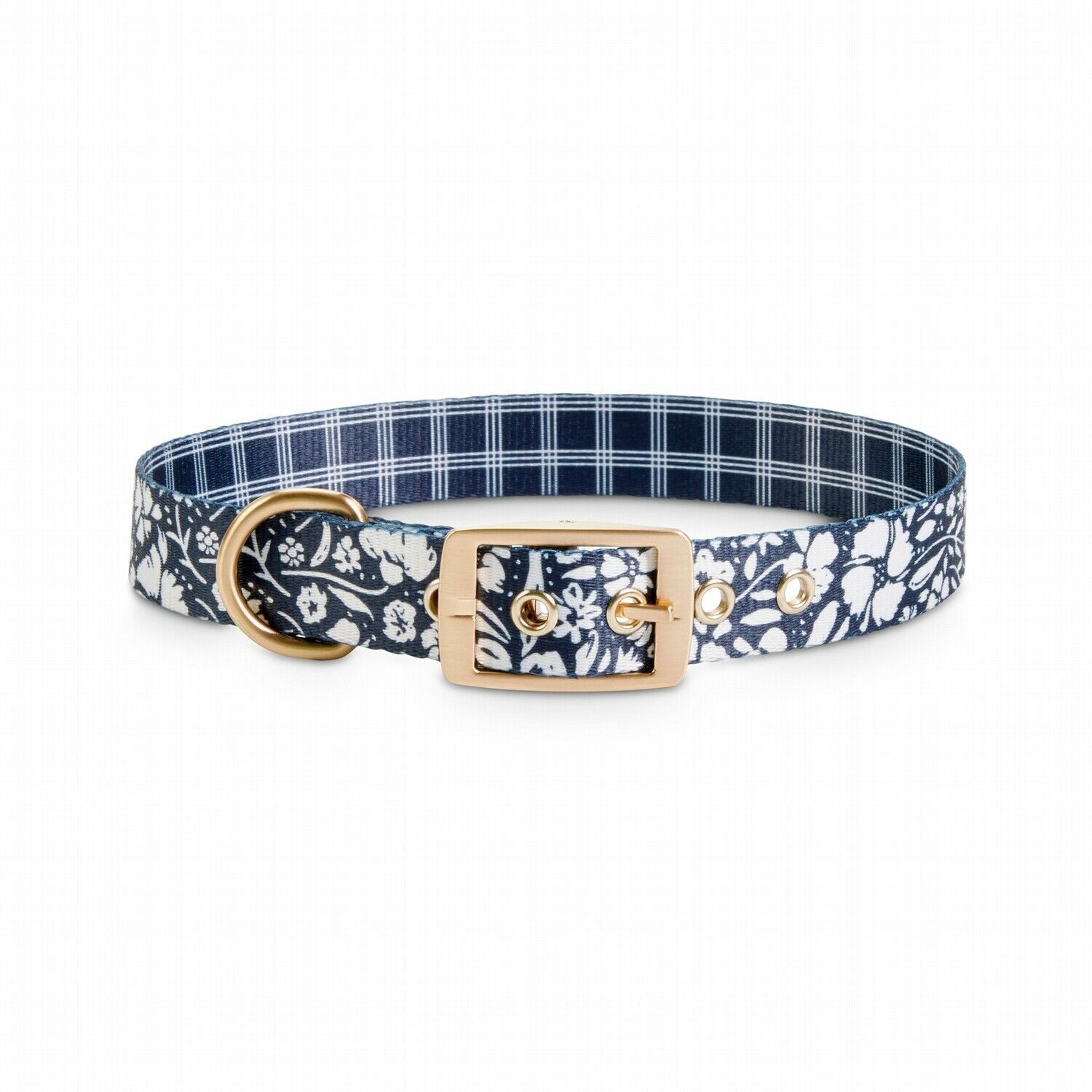 You are Buying a Brand New And factory Sealed Bond Co. Black White Floral Plaid Reversible Dog Collar, Large By: Bond Co. Description Please note that the product information displayed is provided by manufacturers, suppliers and other third parties and is not independently verified by Petco. Full disclaimer here. The Bond Co. Floral Plaid Reversible Dog Collar gives your pup two looks to strut in. With florals on one side and plaid on the other, this collar doubles up on the classics. Pair it with our matching harness and leash to give their walking wardrobe a full makeover. - Floral Plaid Reversible Dog Collar from Bond Co. - Features florals on one side and plaid on the other - D-ring provides a convenient place to attach ID tags, charms, beacons and more - Built-in slide allows for an adjustable fit - Metal pin buckle offers a secure and durable closure Attributes / Specifications Additional Features Size Large Item Dimensions Width 1 IN Pet Sizing For Pet Neck Max 18 IN For Pet Neck Min 21 IN