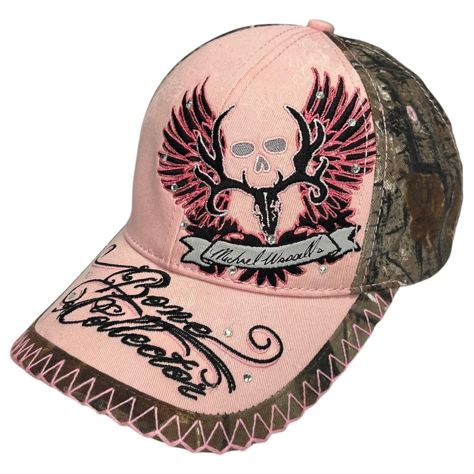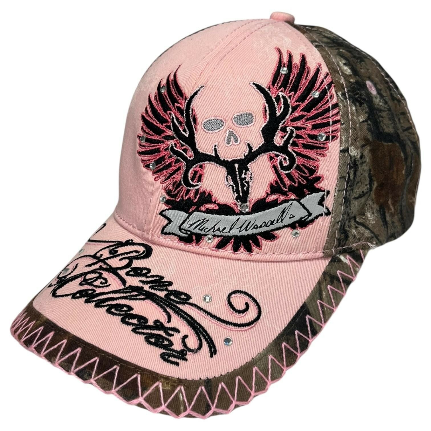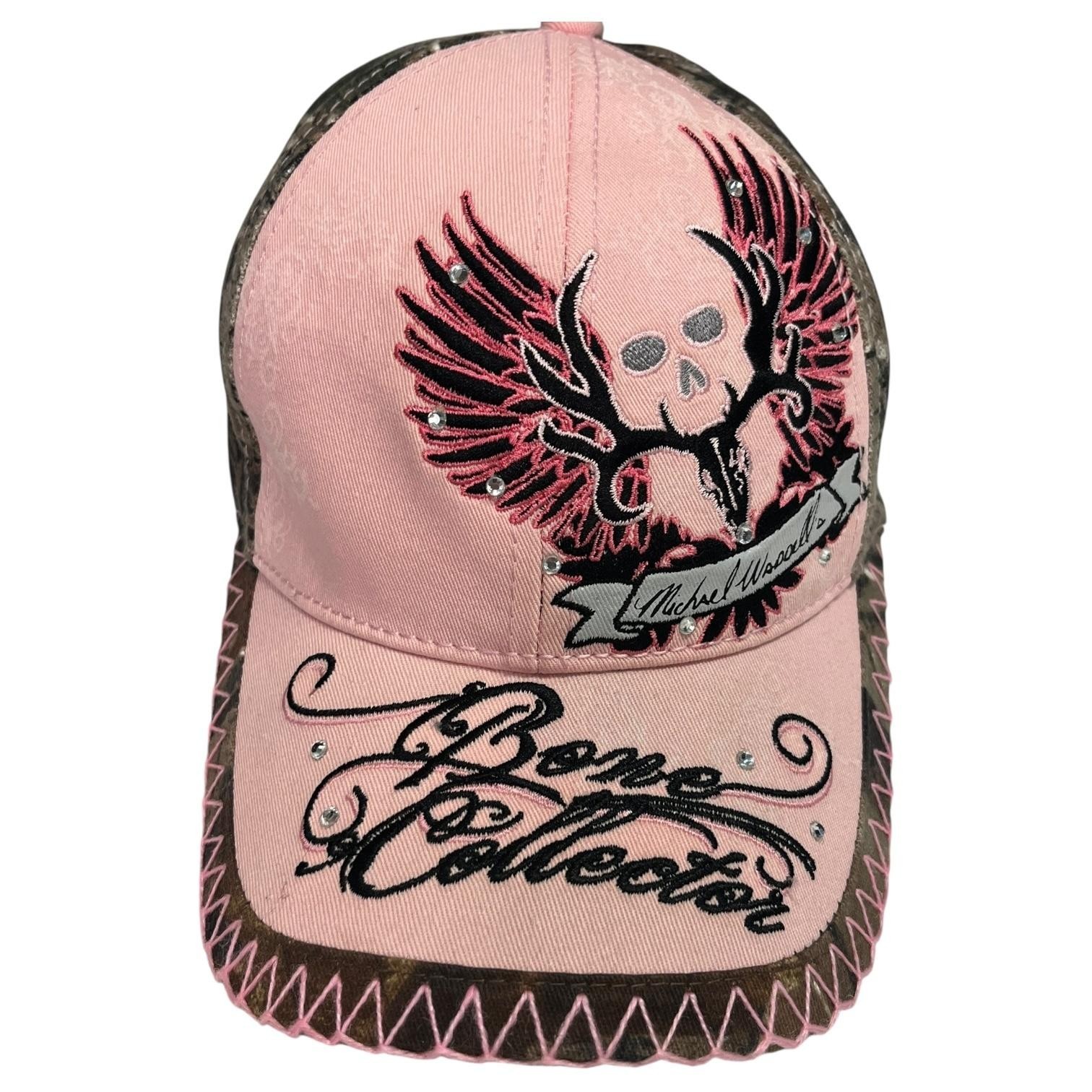 Bone Collector Hat Cap Strap Back Pink Camo Rhinestone Michael Waddell Skull