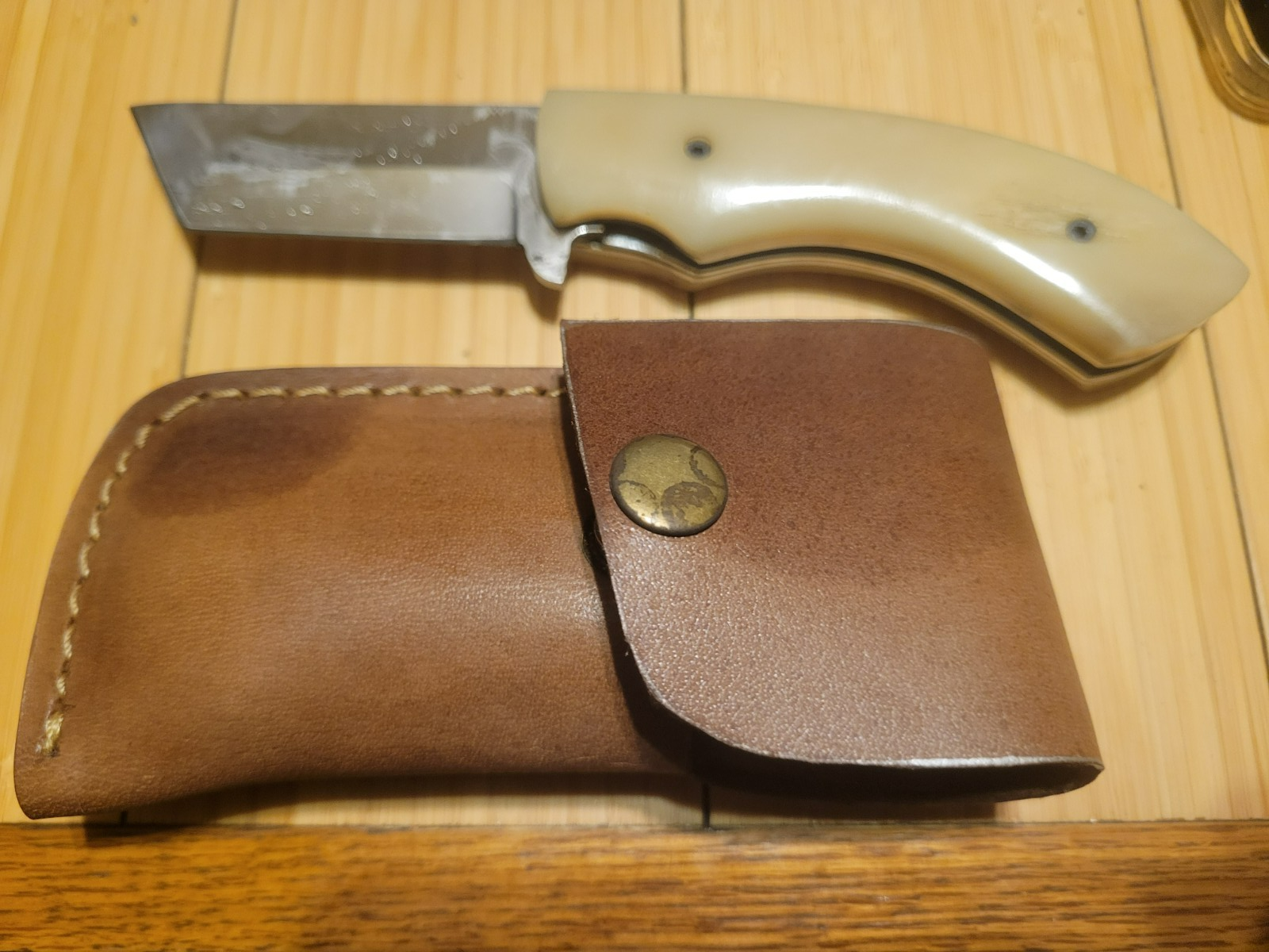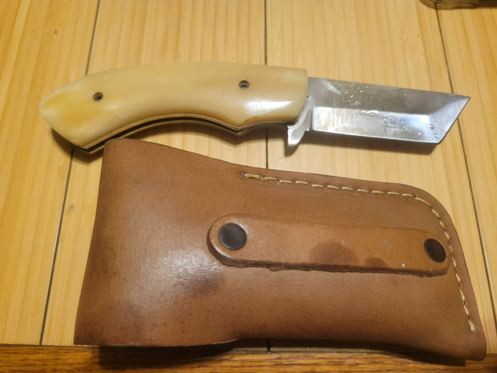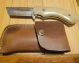 - Bone Handle Steel Tanto Blade Pocket Knife With Leather Pouch
