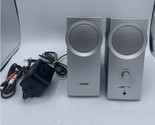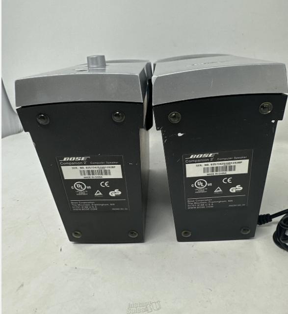 Bose Companion 2 Powered Multimedia Computer Speakers OEM AC Adapter AUX Cable. Tested and workThe Bose Companion 2 Desktop Speaker System is a sleek and powerful audio solution for your desktop or laptop. With a stylish silver design and a 2.0 channel system configuration, this portable speaker system delivers high-quality sound for your computer. Featuring 10W RMS power and Dolby Digital surround sound formats, the Bose Companion 2 speakers provide an immersive audio experience. The wired connectivity and 3.5mm jack audio input make it easy to set up and use with your devices. Upgrade your computer's sound system with this reliable and popular Bose model.