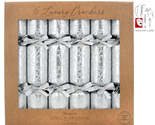 - Box of 6 Luxury Christmas Crackers - Silver Embossed Christmas Leaves