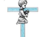 It comes with a blue ribbon bow, with a little boy kneeling in prayer. Made of Rhodium/Enamel/Ribbon.