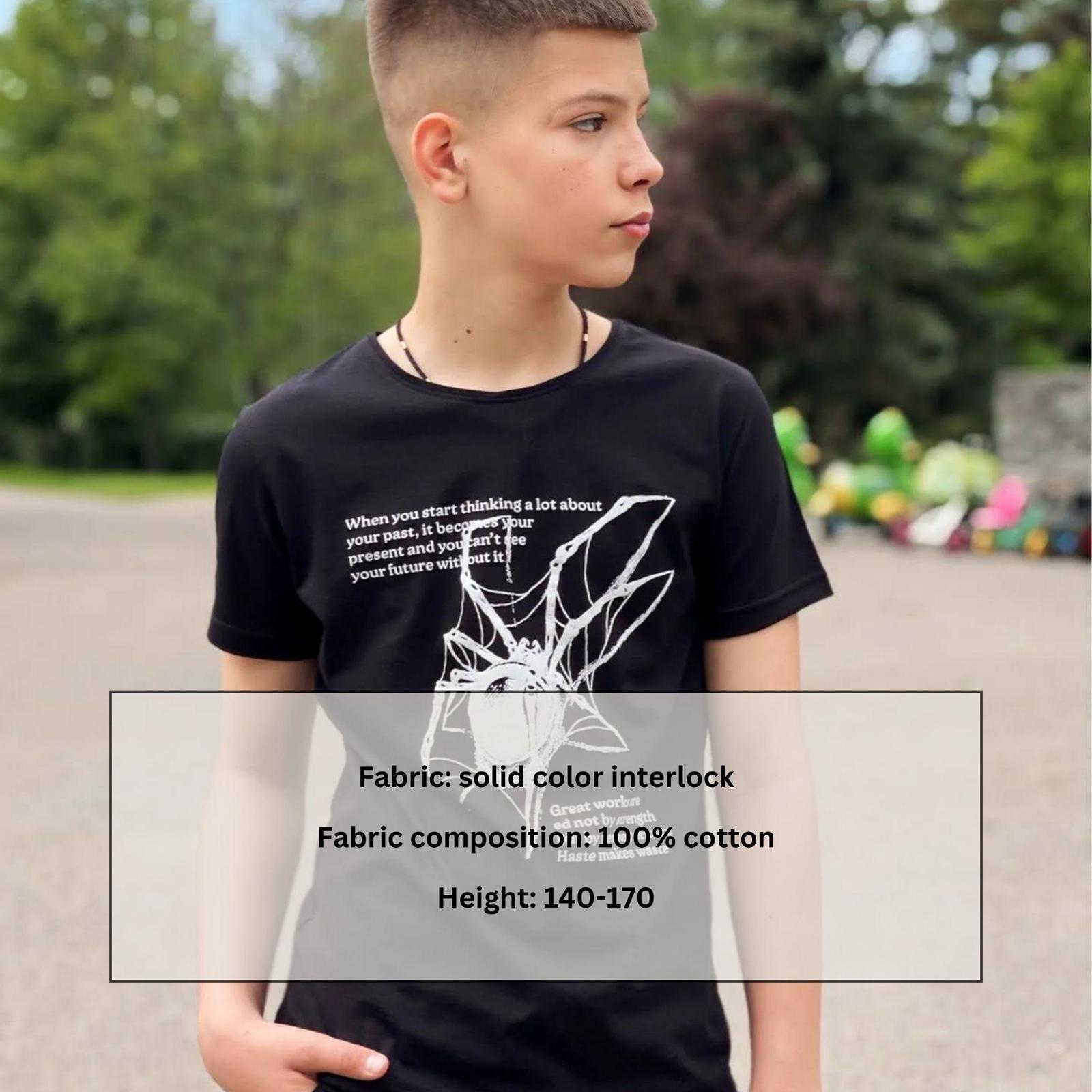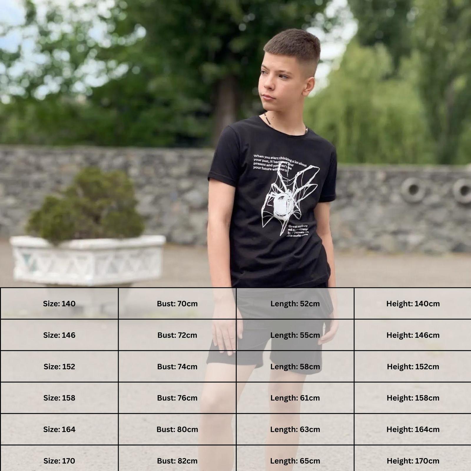 Teenage boy's T-shirt - style and comfort every day! This stylish T-shirt is designed for active teenagers who value comfort and a fashionable look. Made from high-quality cotton, it provides excellent ventilation and a pleasant feel on the skin. Perfect for school activities, sports training, and everyday outings. This T-shirt will be an excellent choice for your active teenager!