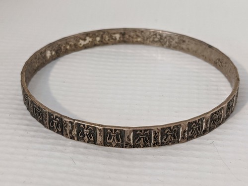 In vendita e un braccialetto da braccialetto da bracciale per motivi Fleur de lis. Le misure del braccialetto 2 5/8 pollici di diametro, largo 1/4 di pollice e pesa 18,0 grammi.