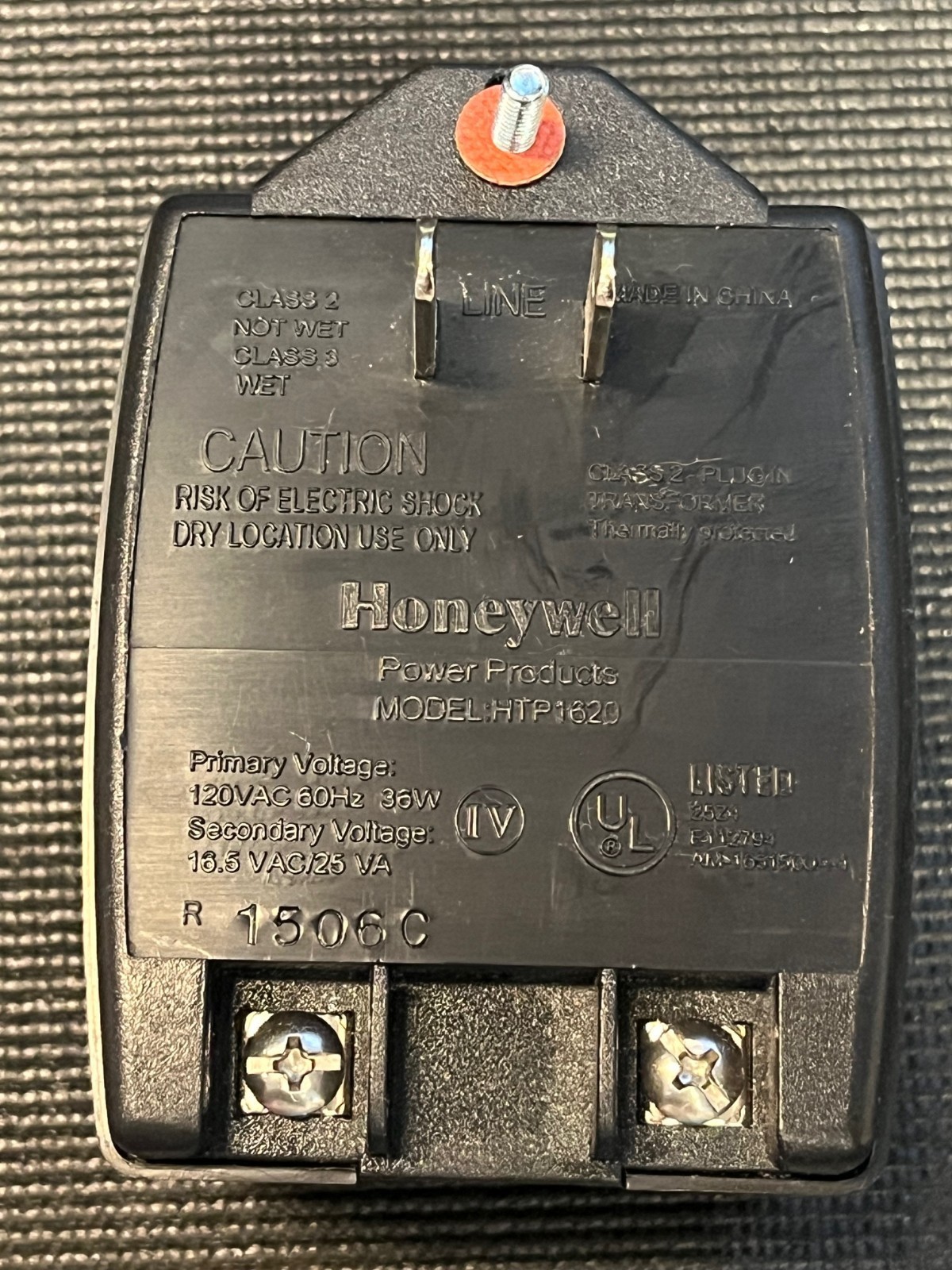 Honeywell HTP1620 Class 2 Plug-In Transformer 16VAC 20VA Black Thermally Protected