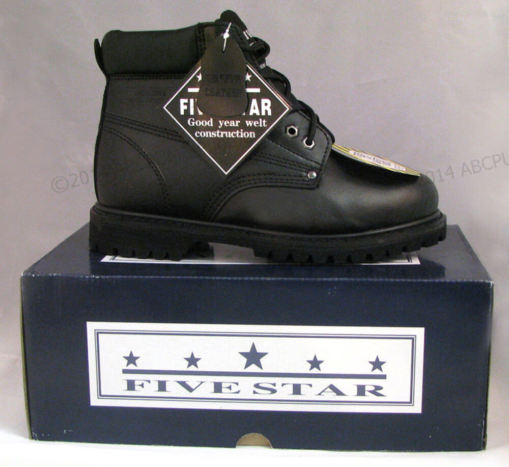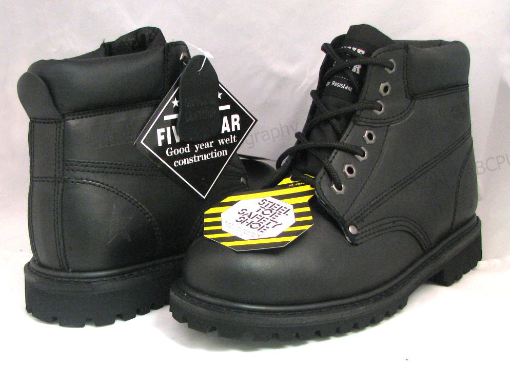 New With Box Five Star Men's Steel Toe Work Boots 6" Black Leather Oil Resistant Shoes Width:Wide (E,W), Size 6-15,