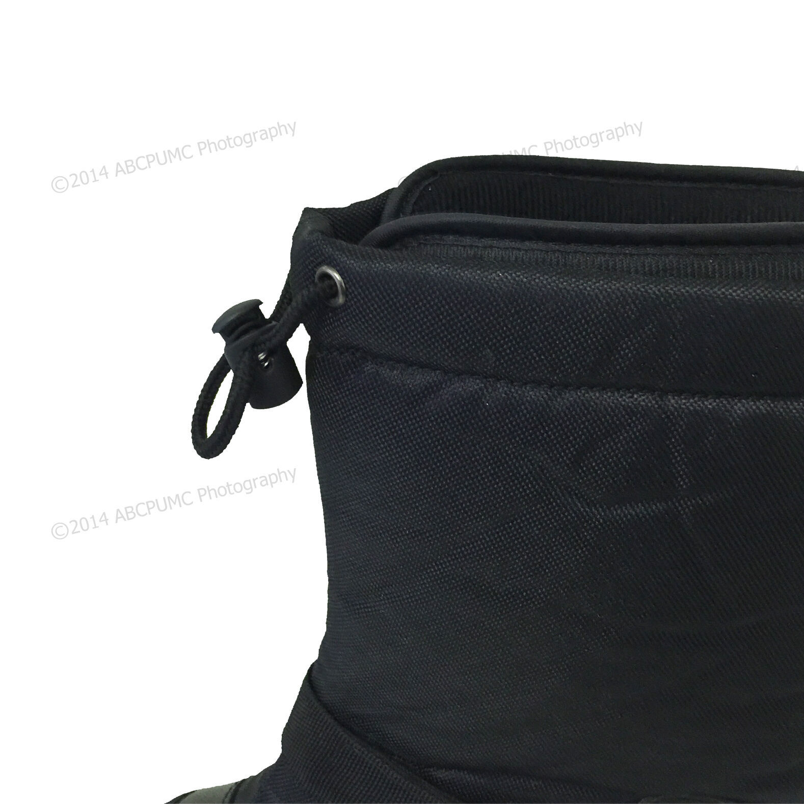 Nylon Upper, Rubber Bottom, Removable Thinsulate Foam Liner, Insulation for Warmth, Hook-and-Loop Strap and Bungee Closure, Waterproof Bottom, Slip Resistant