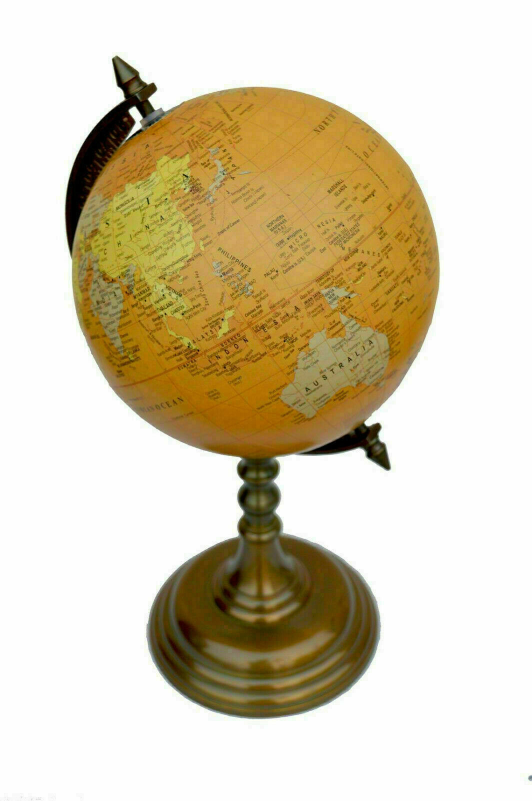 - Brass 16" world globe & map on aluminum stand home office desk antique decor