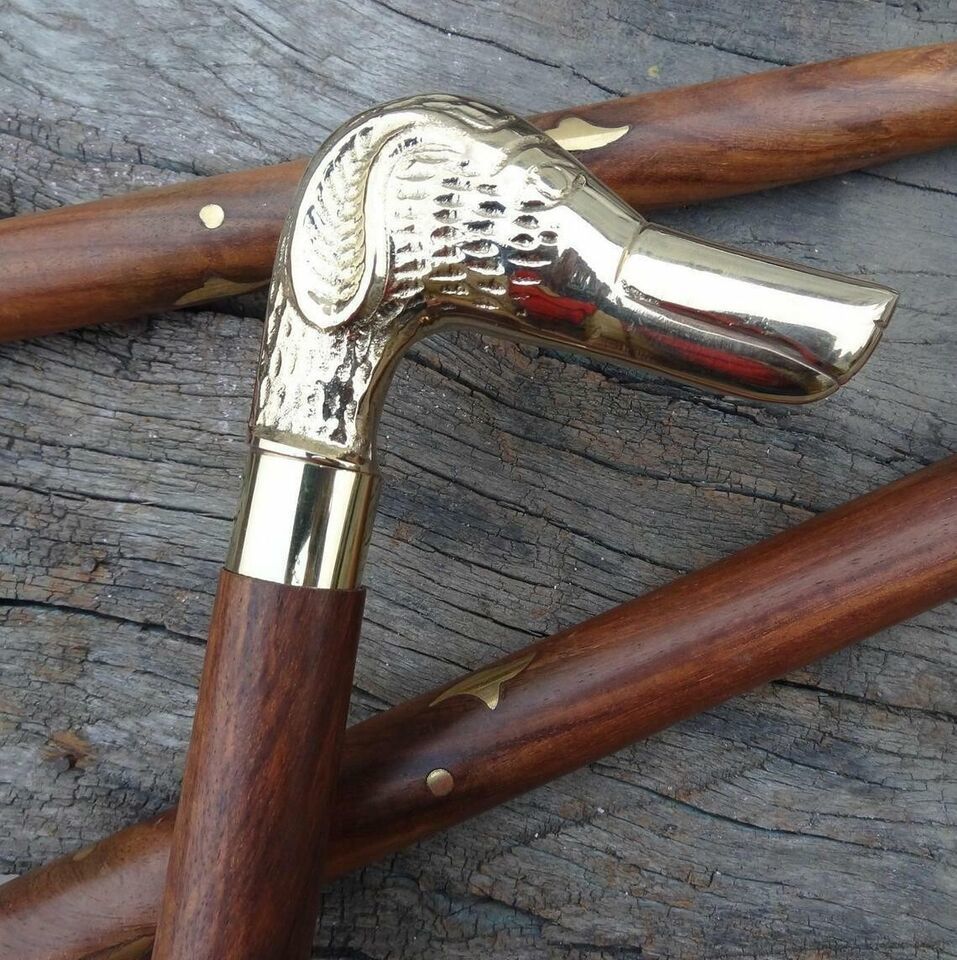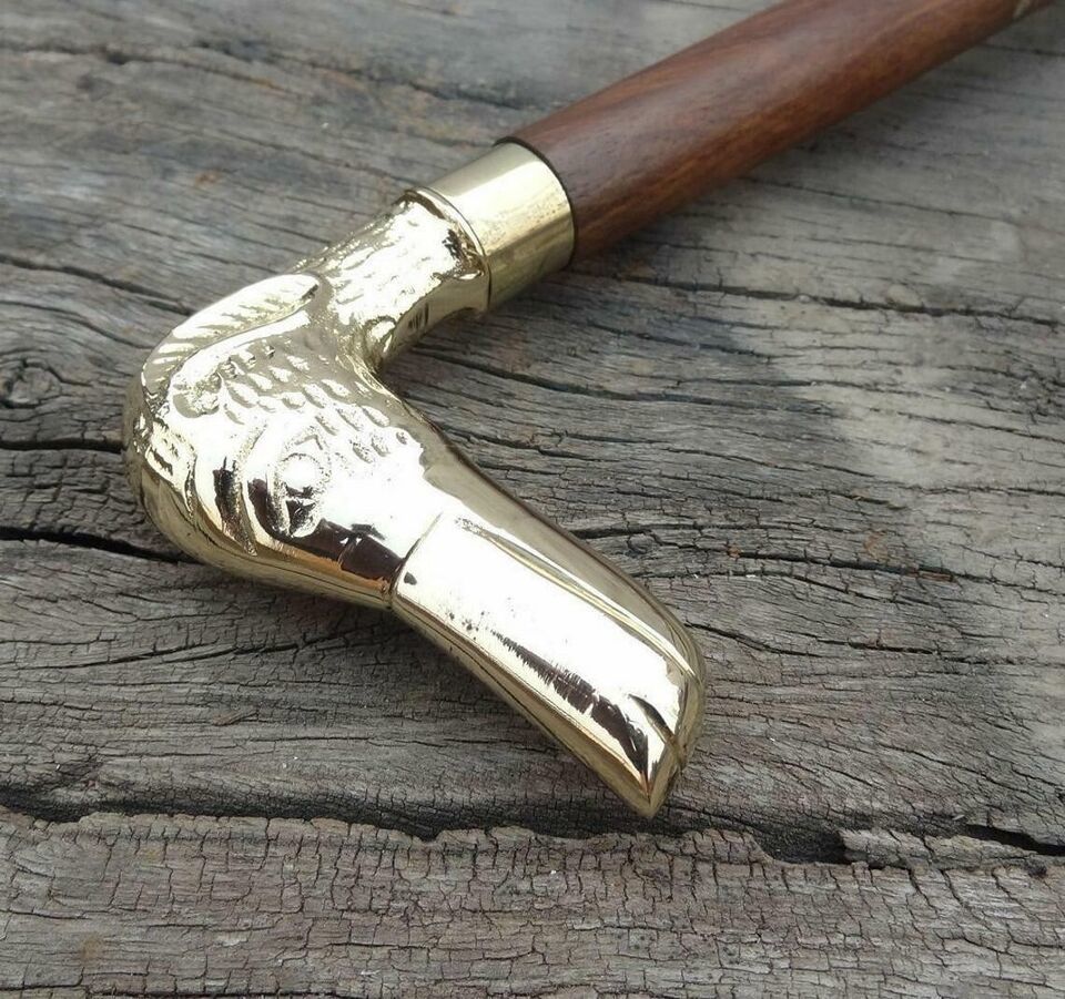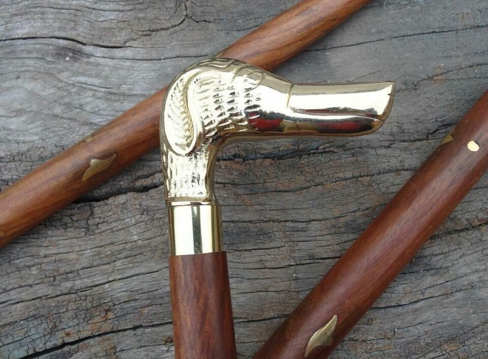 - Brass Dog Head Handle Wooden Walking Stick Cane Vintage Men's Women's Cane Gift