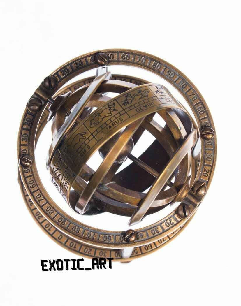 - Brass Globe Nautical Sphere Armillary Zodiac Signs TableTop Paperweight 3.5"