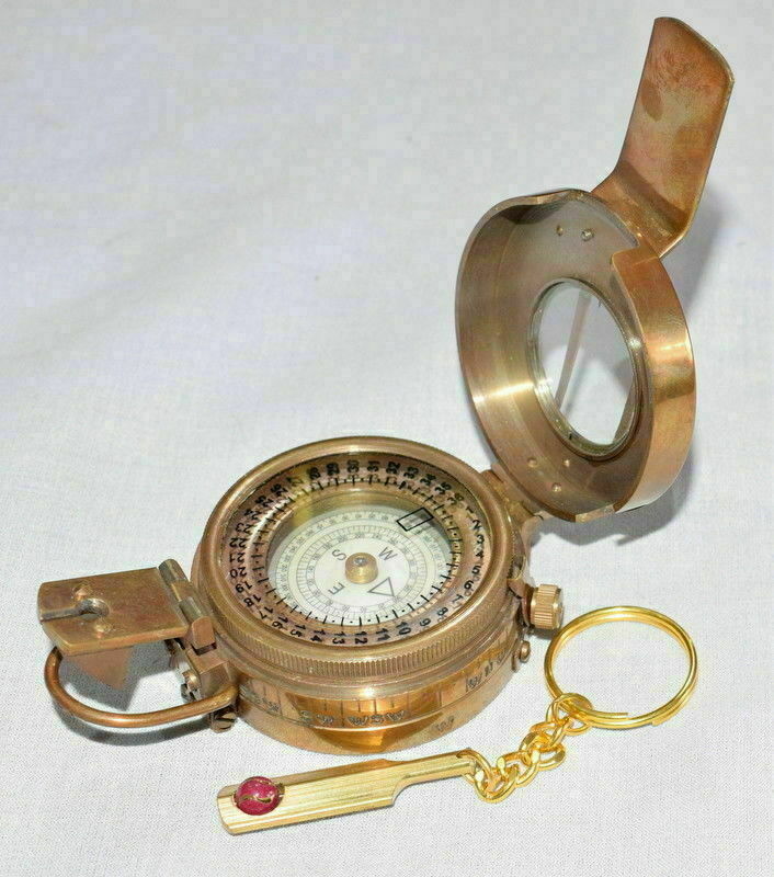 - BRASS MILITARY ENGINEERING COMPASS PRISMATIC VINTAGE Collectible