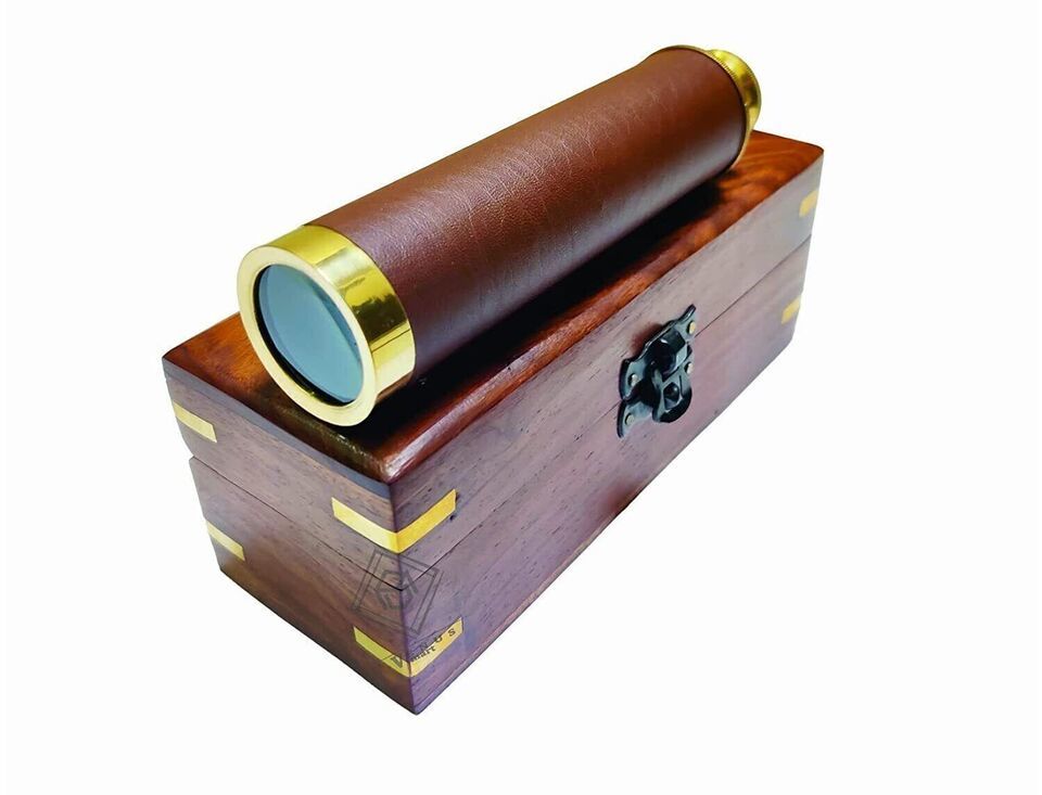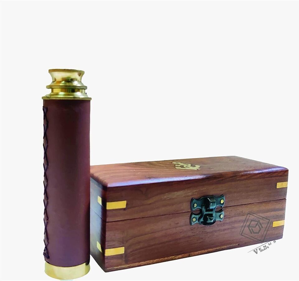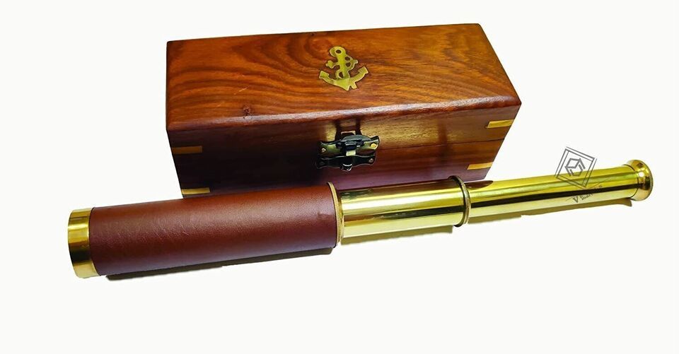 - Brass Telescope with Wooden(12") Box Maritime Nautical Spyglass Collectible Gift