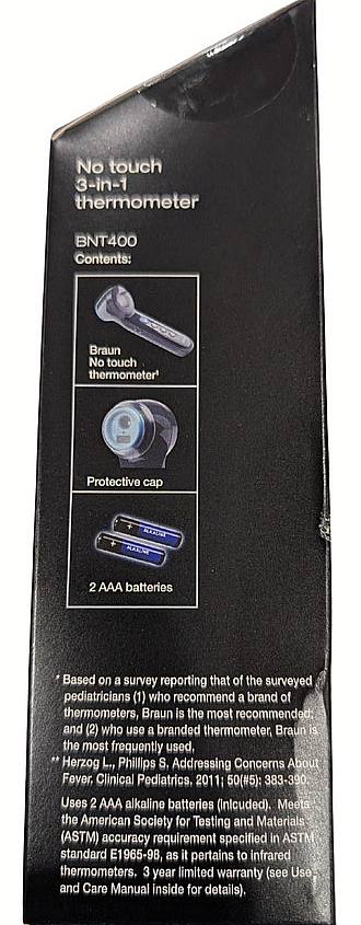- Braun No Touch 3-In-1 Thermometer BNT400 Batteries Included NEW