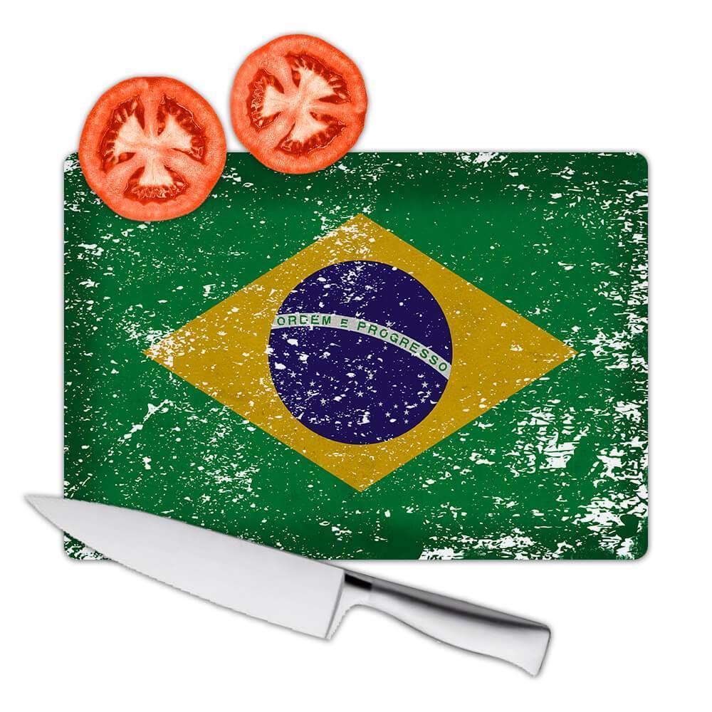 Brazil : Gift Cutting Board Flag Retro Artistic Brazilian Expat Country