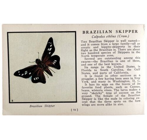 Brazilian Skipper Butterfly Print 1934 America Antique Insect Art PCBG14A